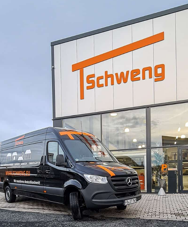 Die Schweng GmbH ist ein führendes Unternehmen für Überdachungen mit 15 Filialen in Deutschland. Sie bietet Terrassenüberdachungen, Carports, Sommergärten, Markisen und Sonderlösungen wie Fahrrad- und Mülltonnenüberdachungen an. Ständige Produktweiterentwicklung und regelmäßige Rabattaktionen sind Teil ihres Angebots.