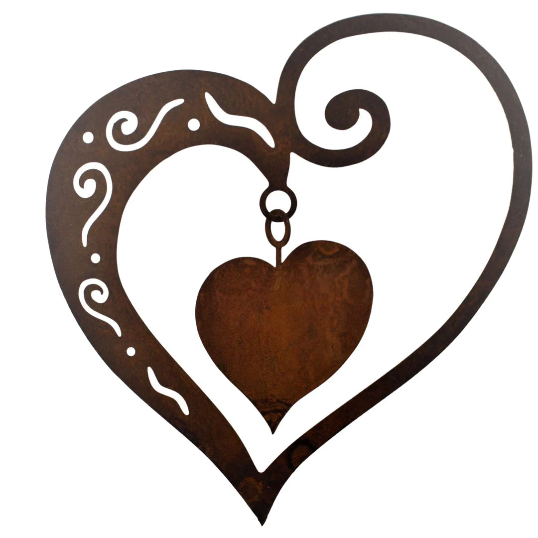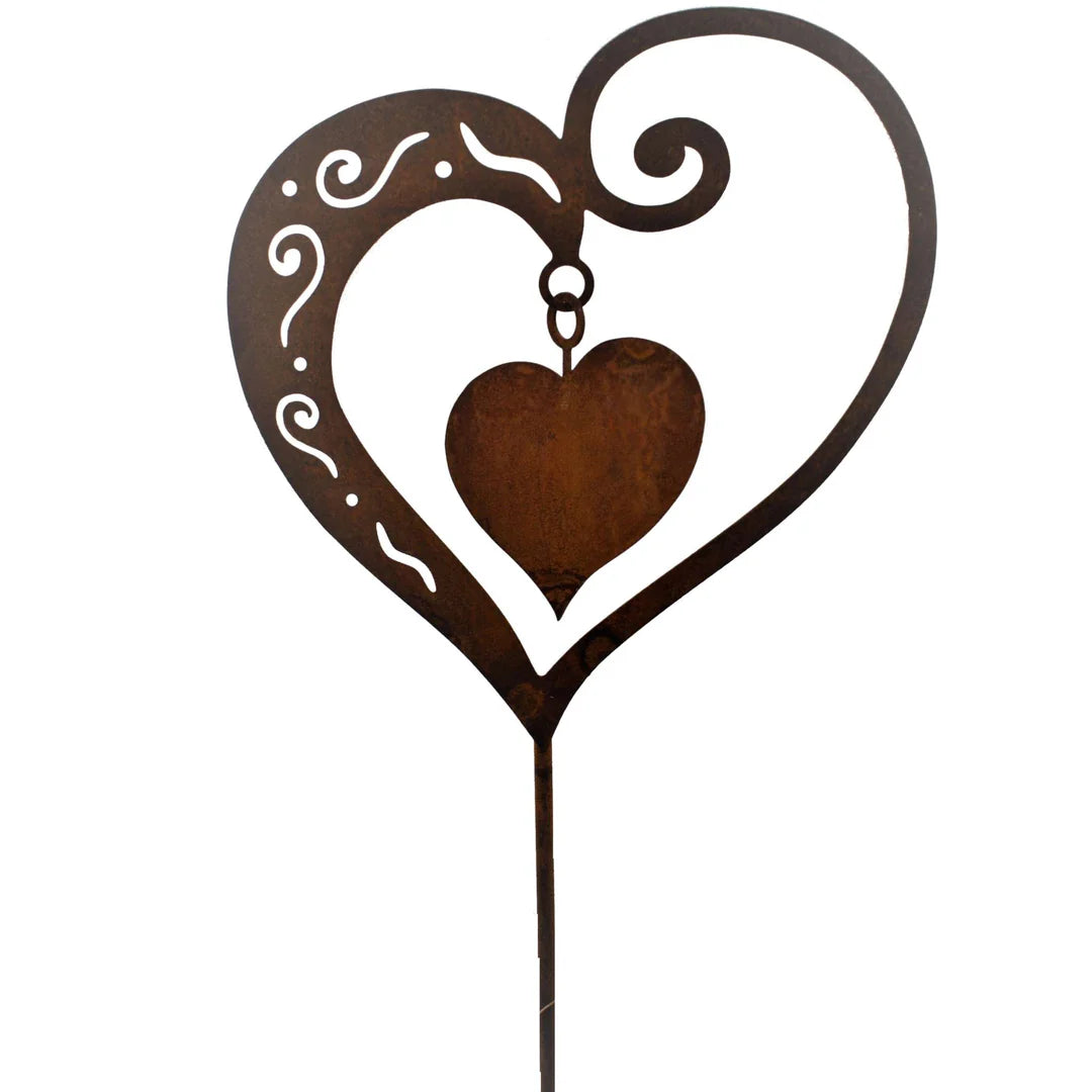 Dekoherz Duett auf Stab oder Hängedeko | Rost Herz aus Metall