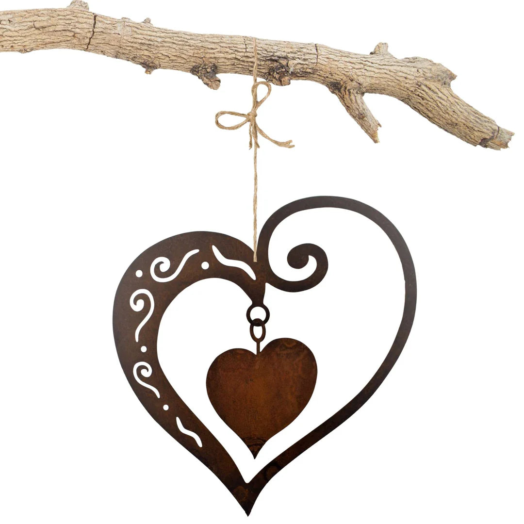 Edelrost Dekoherz „Duett“ – Vintage Herz aus Metall als Hängedeko oder Gartenstecker