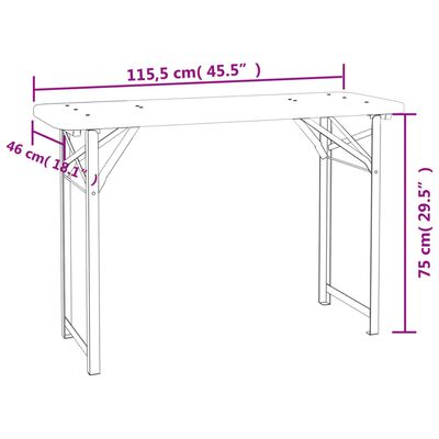 Tisch: Abmessungen: 115,5 x 46 x 75 cm (L x B x H) Tischplatten-Stärke: 2 cm Bank: Abmessungen (jeweils): 115,5 x 24,5 x 78,5 cm (L x B x H) Sitzhöhe vom Boden: 46 cm Holzstärke: 2,5 cm Lieferung umfasst: 1 x Biertisch 2 x Bank