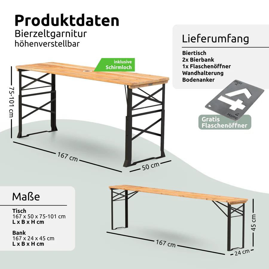 Bierzeltgarnitur - mehrteilig & klappbar - Höheneverstellbar