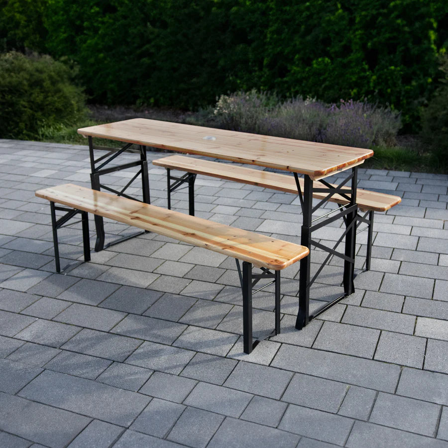 Eine klappbare Bierzeltgarnitur ist die ideale Wahl für alle, die Flexibilität und einfache Handhabung schätzen. Die Bänke und Tische lassen sich schnell und mühelos zusammenklappen und verstauen. Das macht sie besonders praktisch für spontane Feste und den Transport zu verschiedenen Veranstaltungsorten.