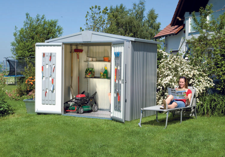 Das AvantGarde® macht seinem Namen alle Ehre. Es ist ein äußerst stabiles Metallgerätehaus, das den Ansprüchen moderner Architektur gerecht wird. Sein gefälliges Aussehen und seine vielen praktischen Vorzüge für den täglichen Gebrauch garantieren ungetrübte Freude. Die lebenslange Wartungsfreiheit spart Geld und kostbare Freizeit.