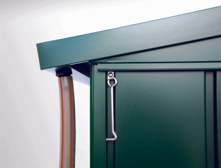 Dank der geringen Tiefe sind die Gerätehäuser Europa Größe 2A und 4A besonders für den Anbau an eine Haus- oder Garagenwand geeignet. Bei diesen Gerätehäusern sind 2 Extra-Anbauwinkel für die Wandmontage enthalten.