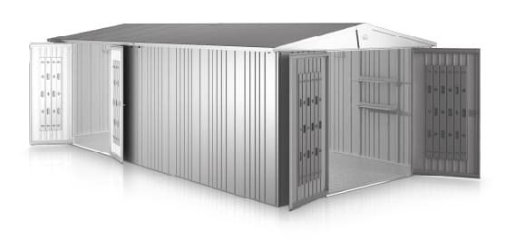 Für die Häuser mit den Breiten 244 cm bzw. 316 cm stehen Verbindungsmodule zur Verfügung. Somit können z.B. zwei Gerätehäuser der Länge nach zu einem großen Haus vereint werden. Beispiel – es wurden zwei Häuser der Größe 7 verbunden – wird das Metall Gerätehaus bis zu sechs Meter lang. So wird das Gerätehaus „Europa“ z.B. zur idealen Garage für eine große Menge an Fahrrädern, Ihren Rasentraktor, PKW-Anhänger und vieles mehr. Ein Zusammenbauhaus verfügt über eine Doppelflügeltür.