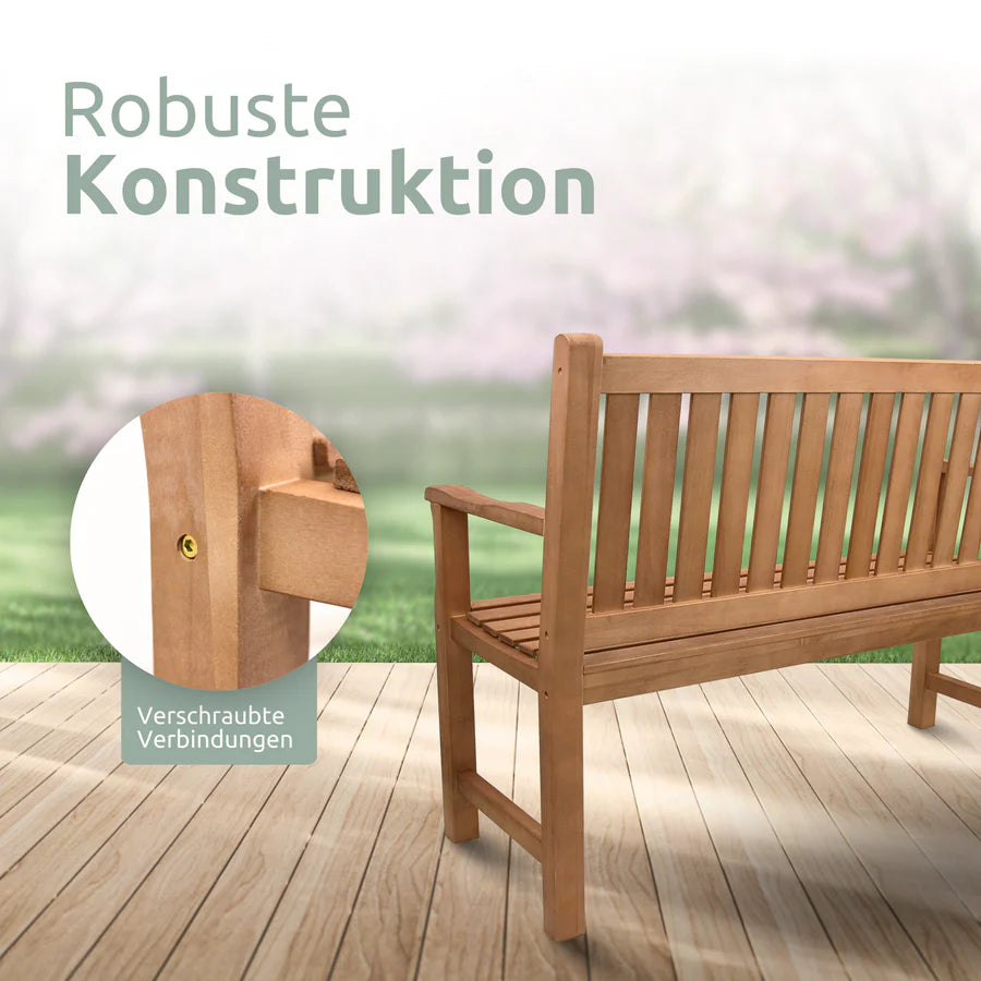 Egal, ob du alleine entspannen oder eine Gartenparty veranstalten möchtest - unsere Gartenbank aus Pappelholz bietet genug Platz und Bequemlichkeit für jeden Anlass. Und das Beste daran? Dank der hochwertigen Verarbeitung bleibt sie dir treu, egal bei welchem Wetter.