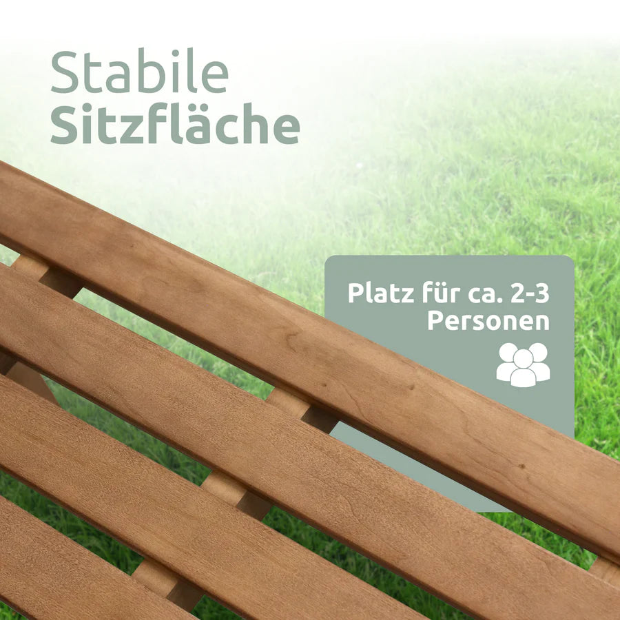 Das helle und natürliche Aussehen des Pappelholzes verleiht deinem Außenbereich eine warme und einladende Atmosphäre. Und nicht nur das: Die geschwungene Form und die ergonomische Sitzfläche sorgen für maximalen Komfort, während die stabile Konstruktion sicherstellt, dass du dich immer sicher fühlst.
