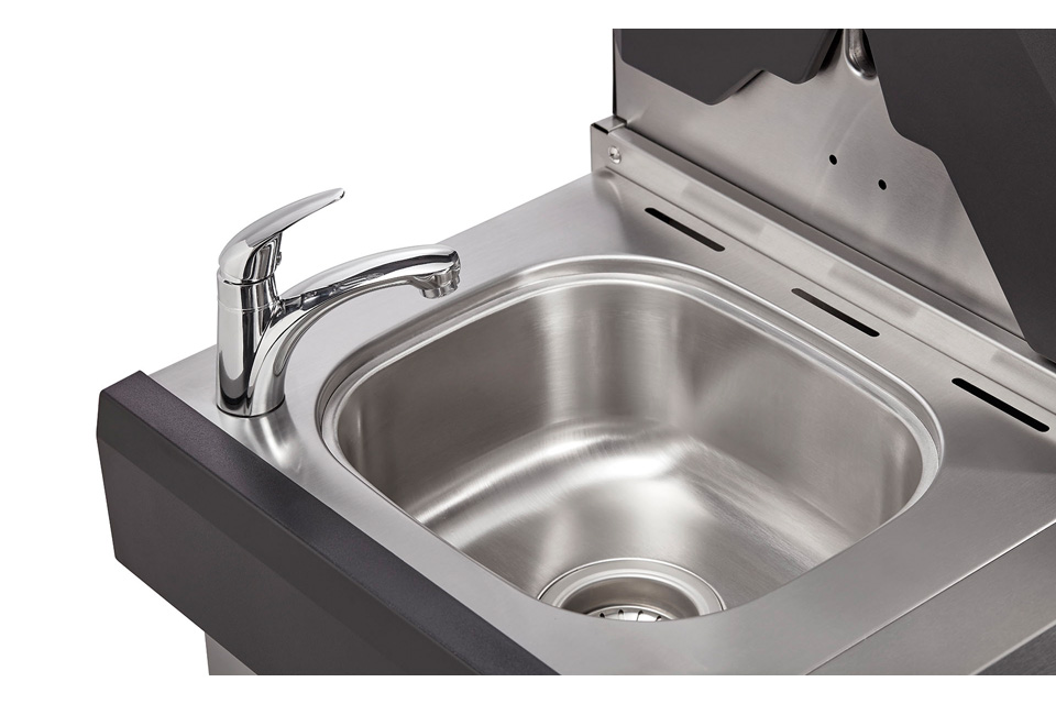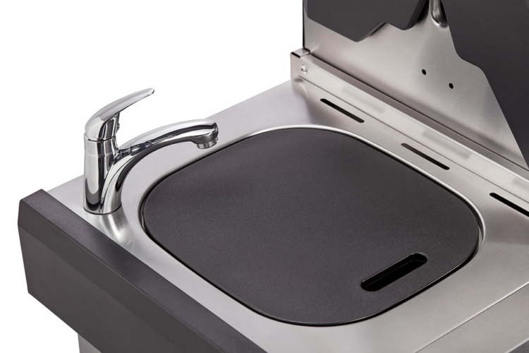 Praktisches Spülbecken in der Ablage integriert und Schneidebrett