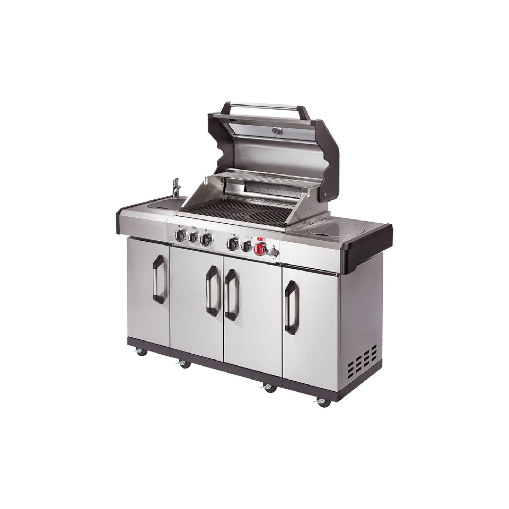 4 Edelstahlbrenner für kraftvolles direktes und indirektes Grillen/Backen