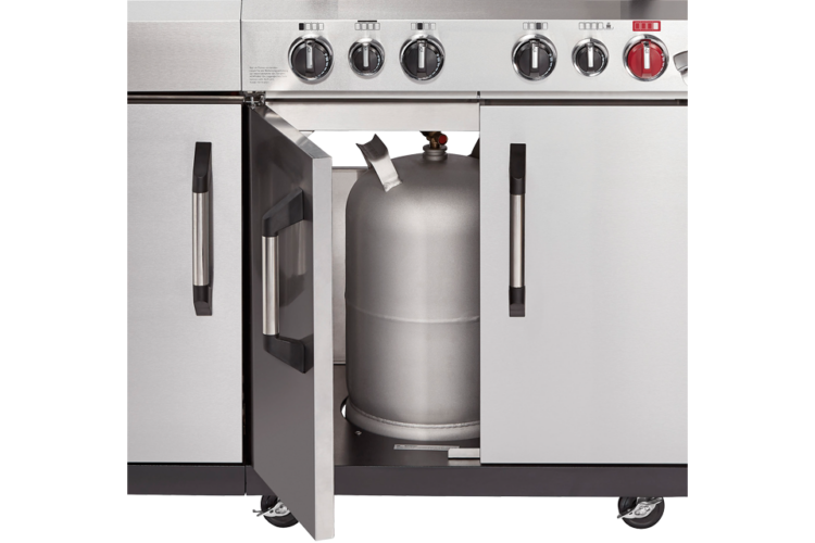 11-kg-Gasflasche darf während des Betriebs im Unterschrank verbleiben