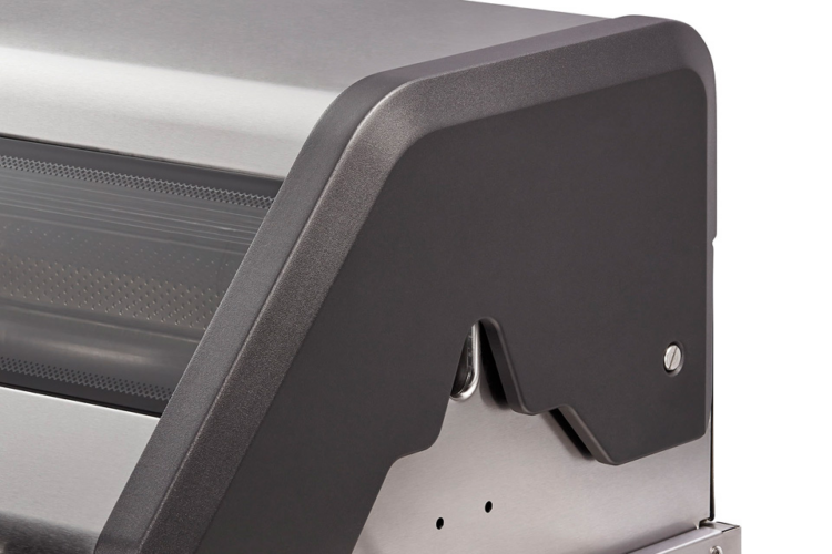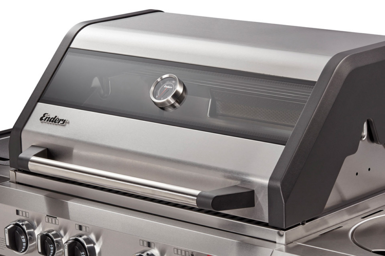 Hochwertige Aluguss-Seitenteile an der Garhaube, Großvolumige Garhaube aus Edelstahl mit integriertem Thermometer