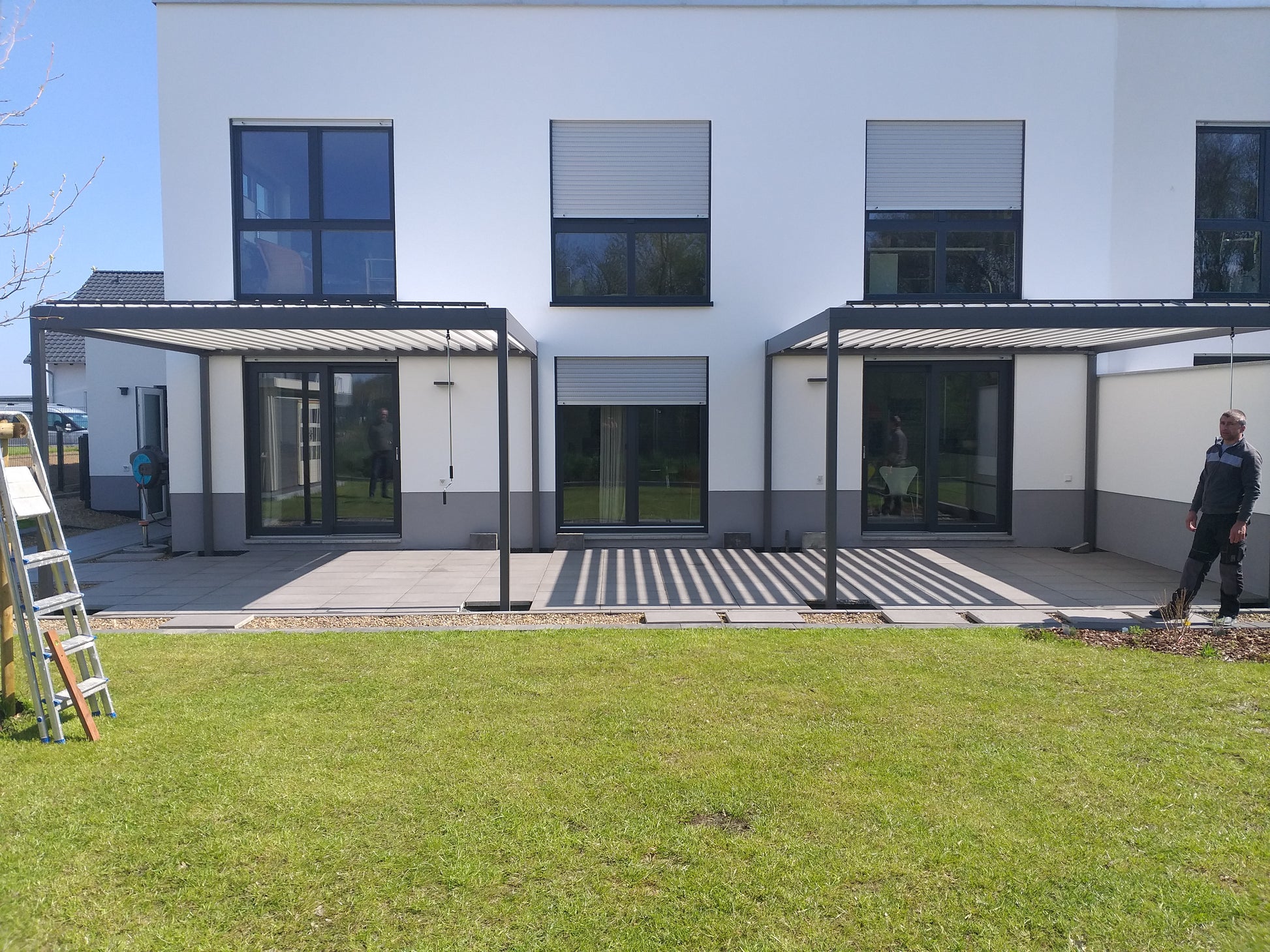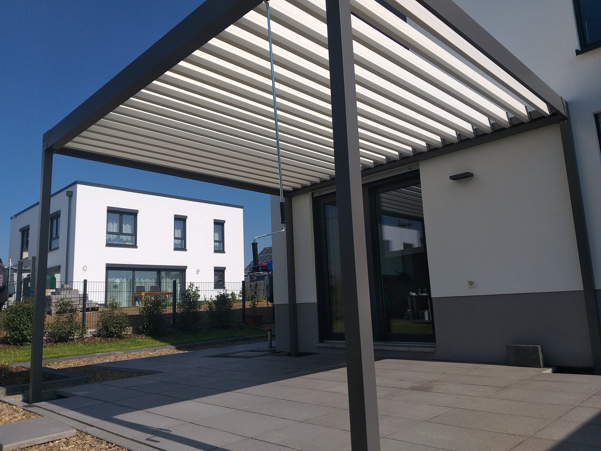 Lamellenpergola B200 – konfigurierbar - Weiß RAL 9016 Feinstruktur - Breite 3,03 m – 3,18 m