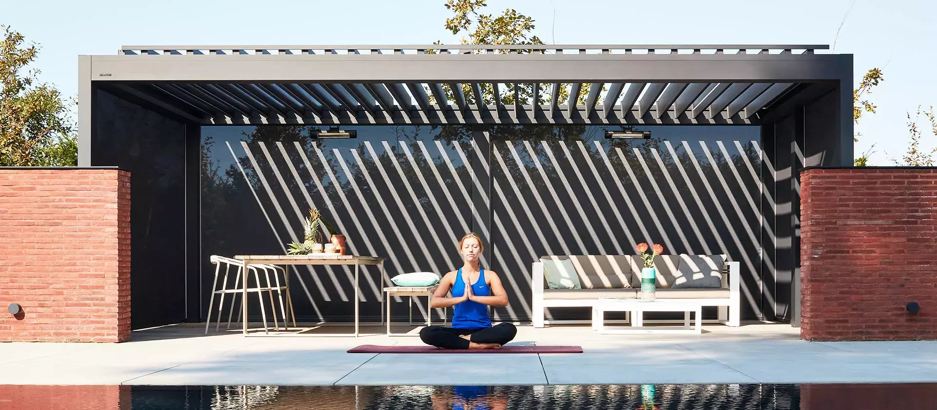 〉 Einstellbare Sonneneinstrahlung mit 135° kippbaren Lamellen.