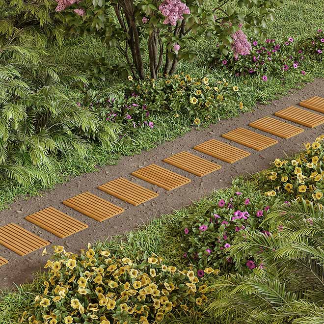 Holztritte für Gartenweg 2,5 m lang (bei Brettabstand von ca. 6 cm)