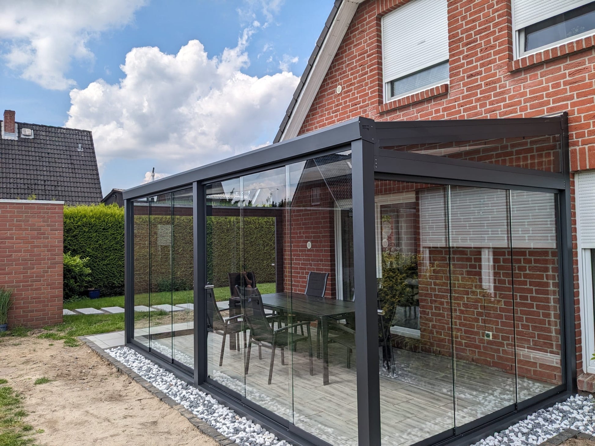- Ganzjähriger Schutz: Dank der vollverglasten Wände und Beschattungsmöglichkeiten können Sie den Sommergarten auch im Winter als erweiterten Wohnraum nutzen.