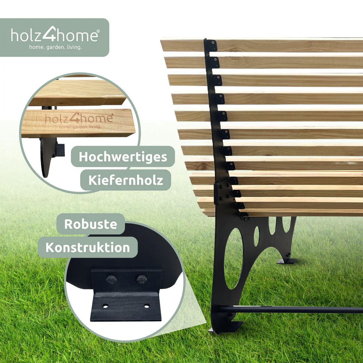 Die Kombination aus robusten Metall-Standbeinen und hochwertigen Querstreben aus Kiefernholz vereint Stabilität und natürliche Ästhetik. Dank der einfachen Montage kannst Du die Liege im Handumdrehen aufstellen und genießen. Das stilvolle Design fügt sich harmonisch in jede Umgebung ein und verleiht Deinem Außenbereich einen Hauch von Eleganz.
