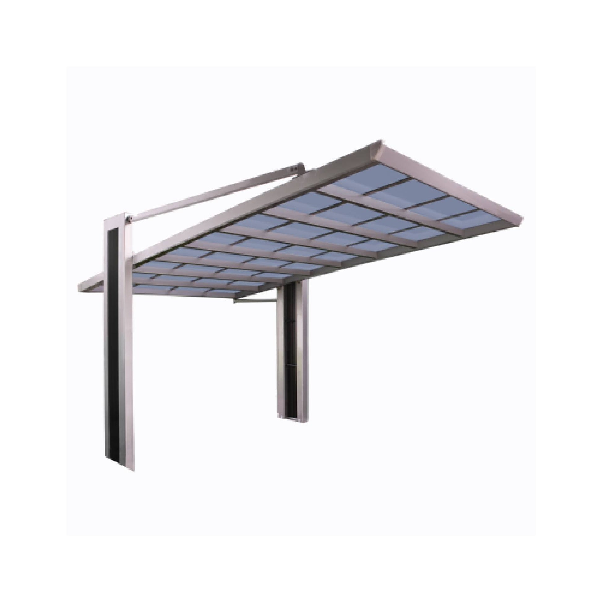 – Dach aus hoch schlagfestem und hitzeabweisendem Polycarbonat in Rauchglasgrau oder Clearmatt.