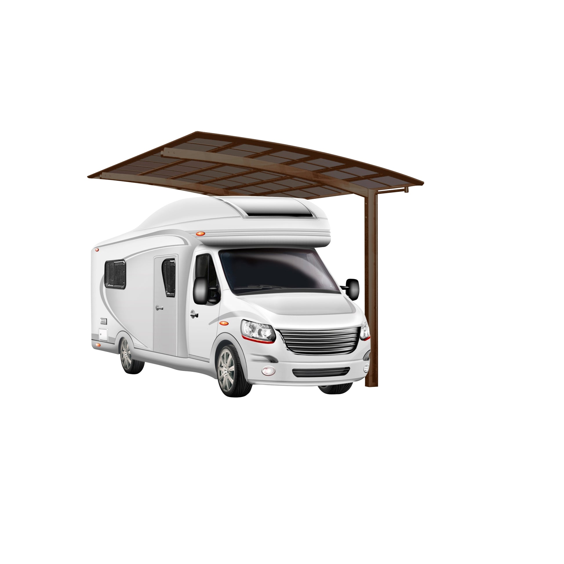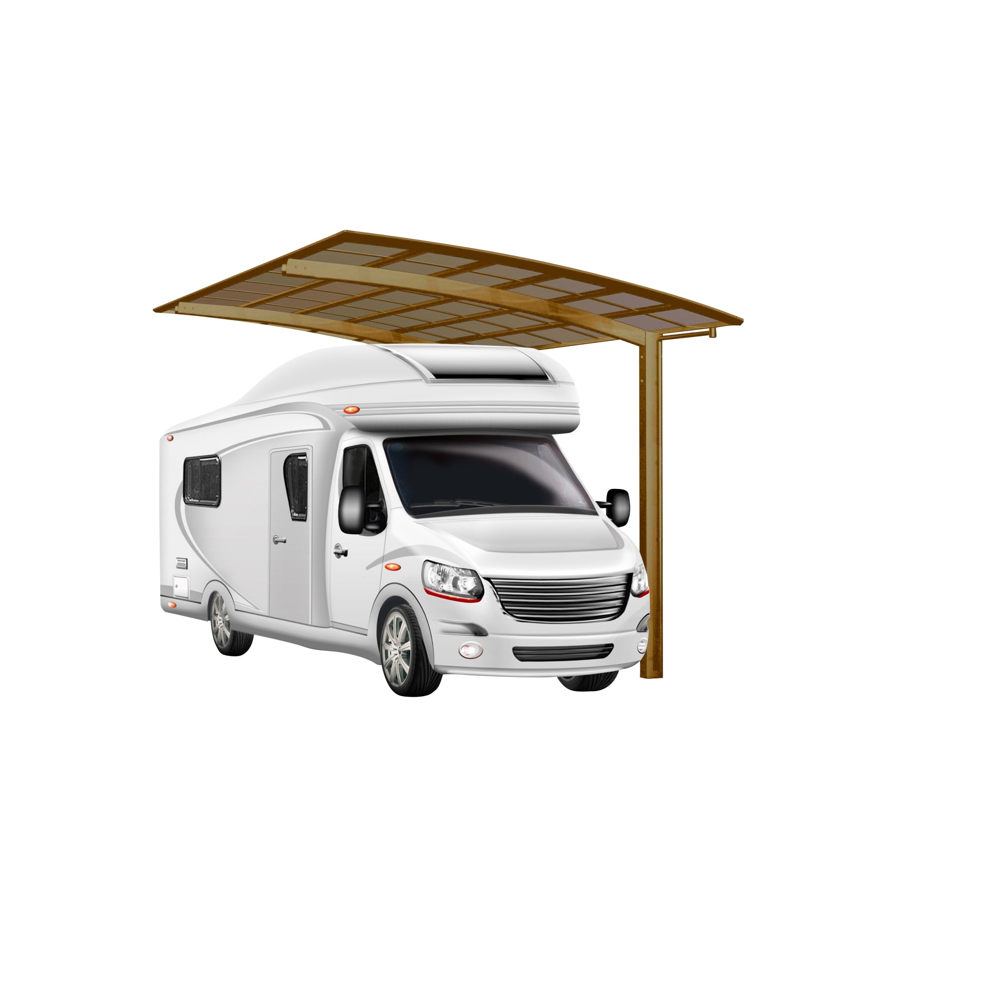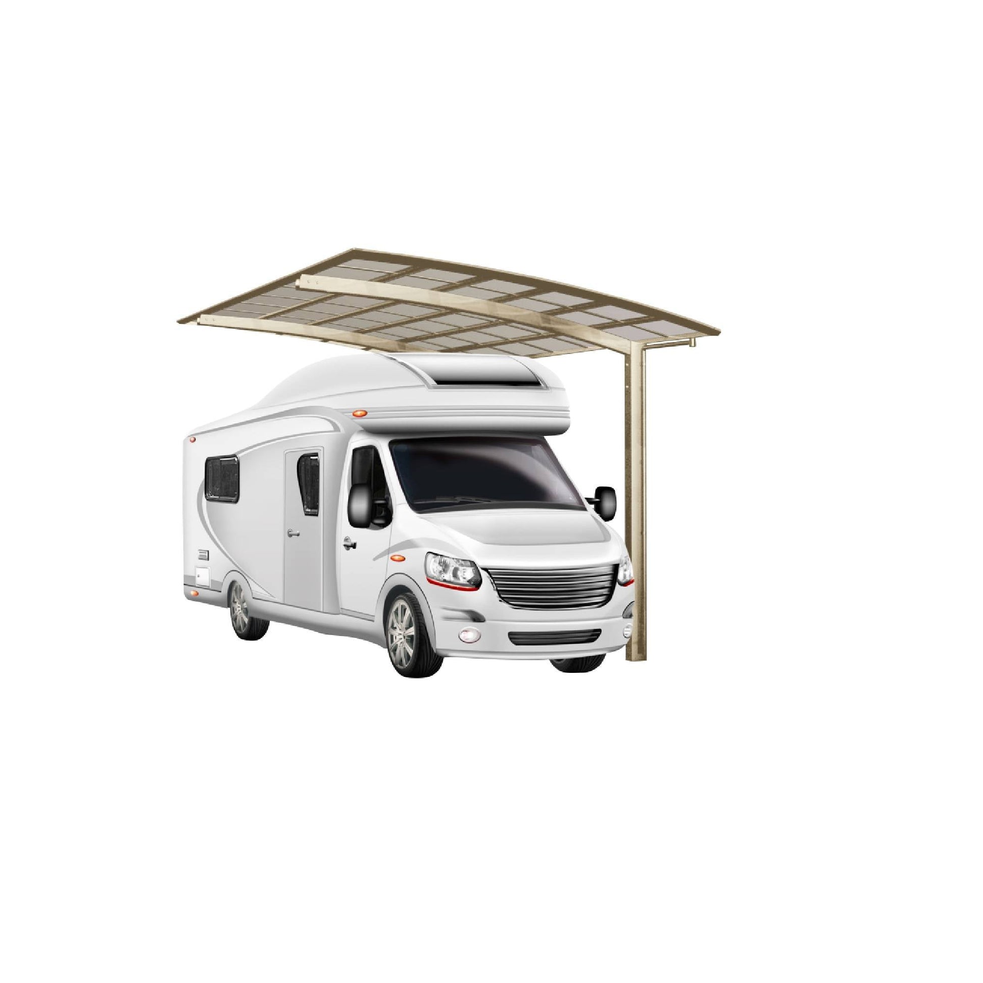 Der Design-Carport der Serie Portoforte Caravan passt mit dem gebogenen Dach harmonisch in jede Umgebung.