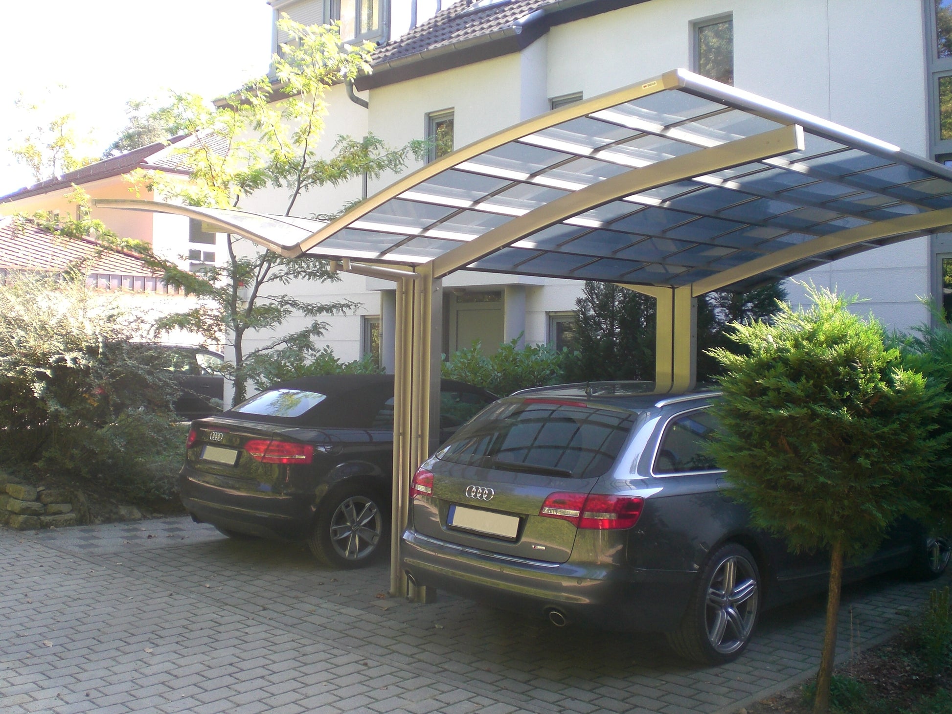 Der Design-Carport der Serie Portoforte passt mit dem gebogenen Dach harmonisch in jede Umgebung.