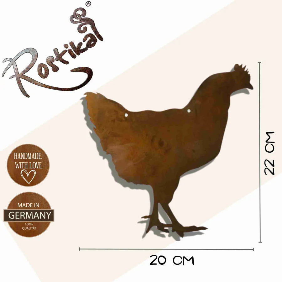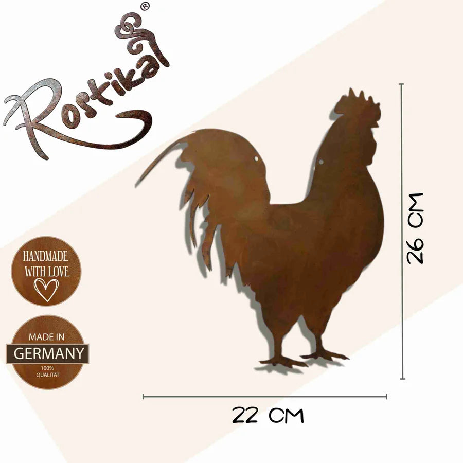 Mit der Huhn und Hahn Rost Deko Ihrer Kreativität keine Grenzen gesetzt. Ob als Fensterdeko hängend im Küchenfenster oder als Gartendeko Figuren von einem Ast baumelnd - immer ein toller Metall Deko Blickfang.