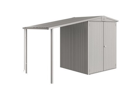 Das Seitendach für das Gerätehaus Europa kann wahlweise links, rechts oder beidseitig angebaut werden. Der Bausatz enthält die Stützen, ein kurzes Regenfallrohr und das Befestigungsmaterial (nicht für Gr. 1 und Gr. 2A erhältlich.)