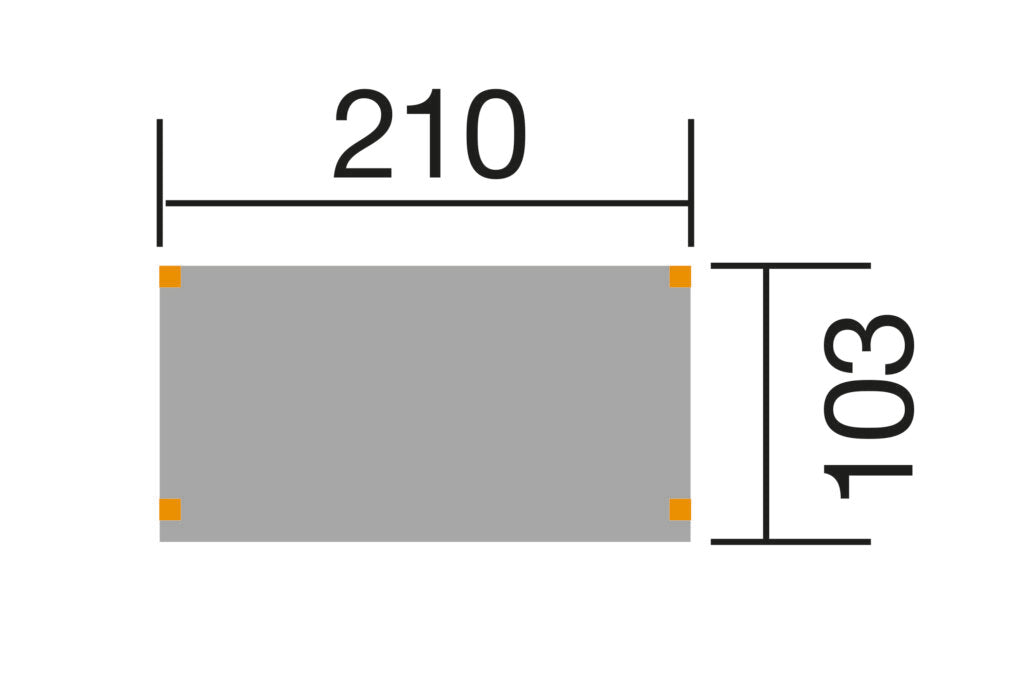 Sockelmaß: 210cm Breite x 103cm Tiefe