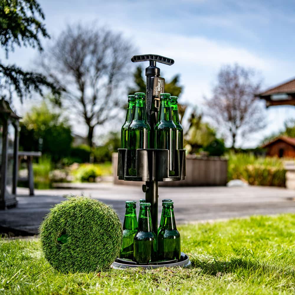 Da sieht man das Bier vor lauter Rasen nicht! Mit dem HopfenHöhle Kunstrasen-Deckel bleibt die HopfenHöhle in Rasen-/Grünflächen vor neugierigen Augen und durstigen Kehlen schön verborgen. Die wetterfeste Kunstrasen-Abdeckung als perfekte Tarnung für Deinen Erdloch Bierkühler.