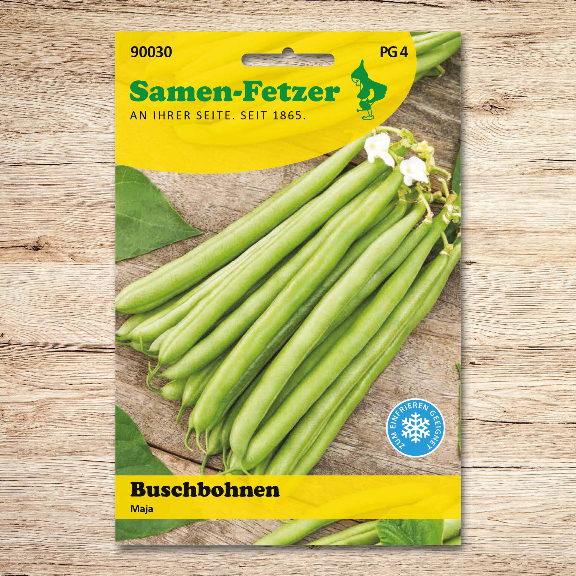 Die Buschbohne „Maja“ ist rund- und grünhülsig, fadenlos und sehr ertragreich. Diese Bohne kann sehr früh geerntet werden. Die Hülsenlänge beträgt 18-20 cm. Diese Buschbohnen-Sorte ist eine sehr reichtragende, dickfleischige Delikatessbohne. Ihre Kornfarbe ist weiß. Die Buschbohnen lassen sich gut als Bohnengemüse, Salate, zum Einmachen und zum sauren Einlegen verwenden. Außerdem ist sie zum Einfrieren bestens geeignet. Verzehren Sie diese Bohne jedoch nie roh! Diese Bohnen-Art enthält die wichtigen Vitamine A, B und C und zusätzlich noch die Mineralstoffe Calcium, Kalium, Eisen und Phosphor. Eine Mischkultur mit Bohnenkraut, Gurken, Sellerie, Rote Bete, Rettich wird empfohlen.