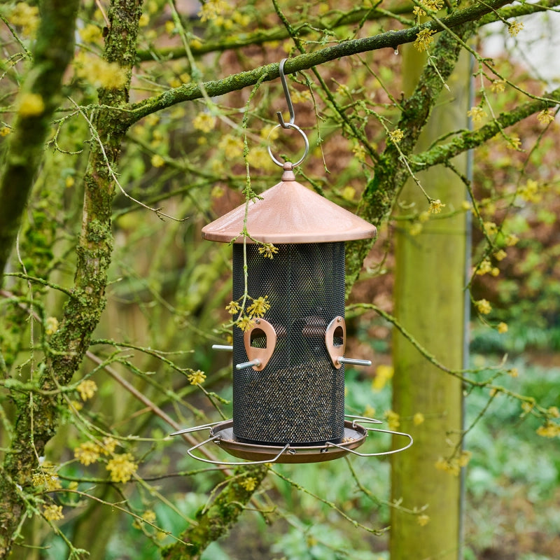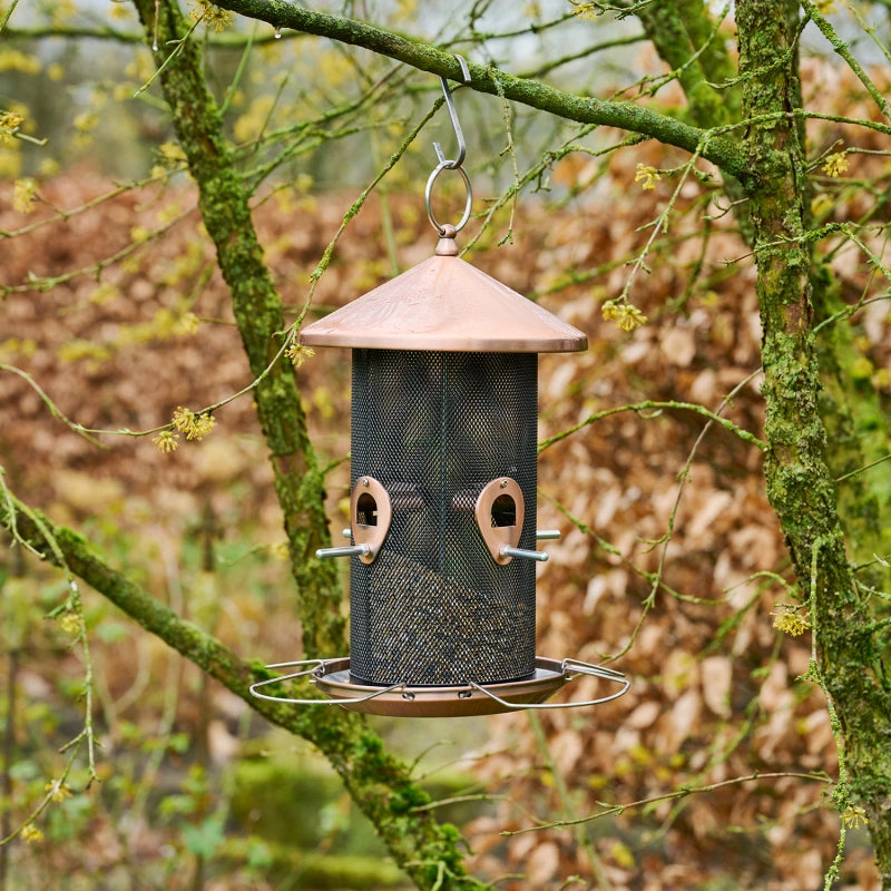 Langlebiges Metall | Die Futterstelle besteht aus kupferbeschichtetem Stahl. Das Material ist witterungsbeständig, bruchsicher und sehr langlebig.