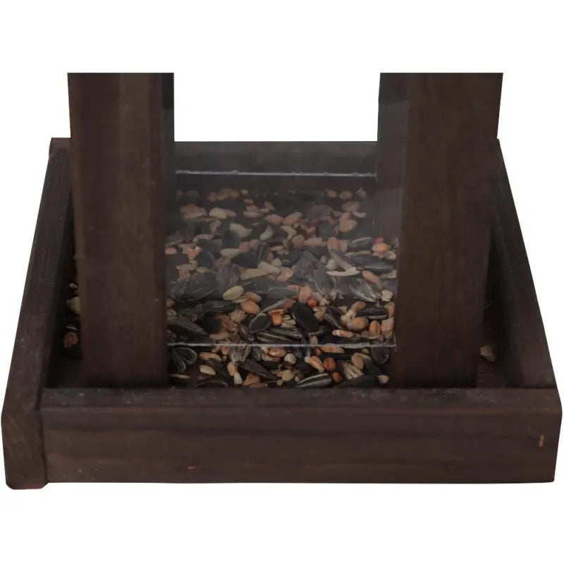 Robuste Materialien | Das Dach besteht aus einem robusten Stahlblech. Die Seiten sind mit Plexiglas versehen. Diese Materialien verleihen der Futterstation langlebige Stabilität.