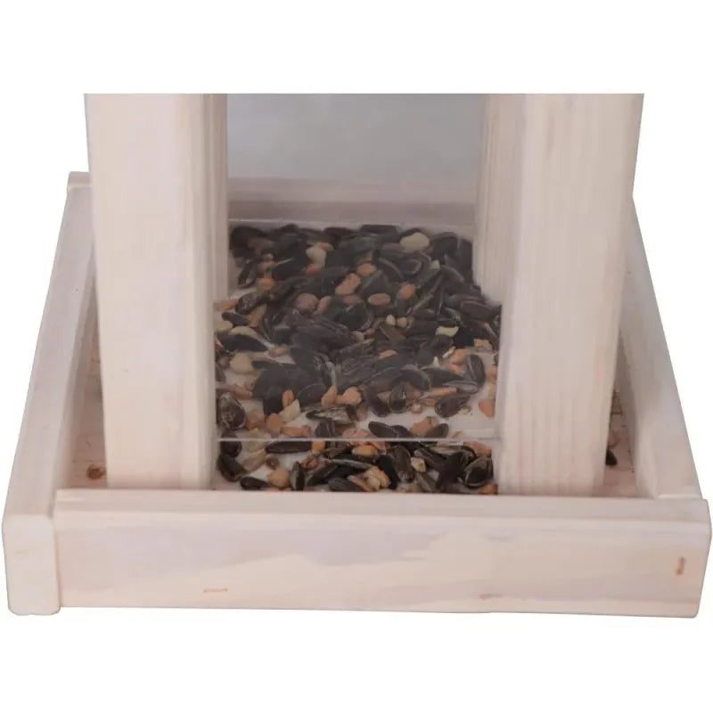 Praktische Handhabung| Das Dach lässt sich öffnen, sodass du die Futterstation gut von oben mit Mischfutter befüllen und zwischendurch einfach reinigen kannst.
