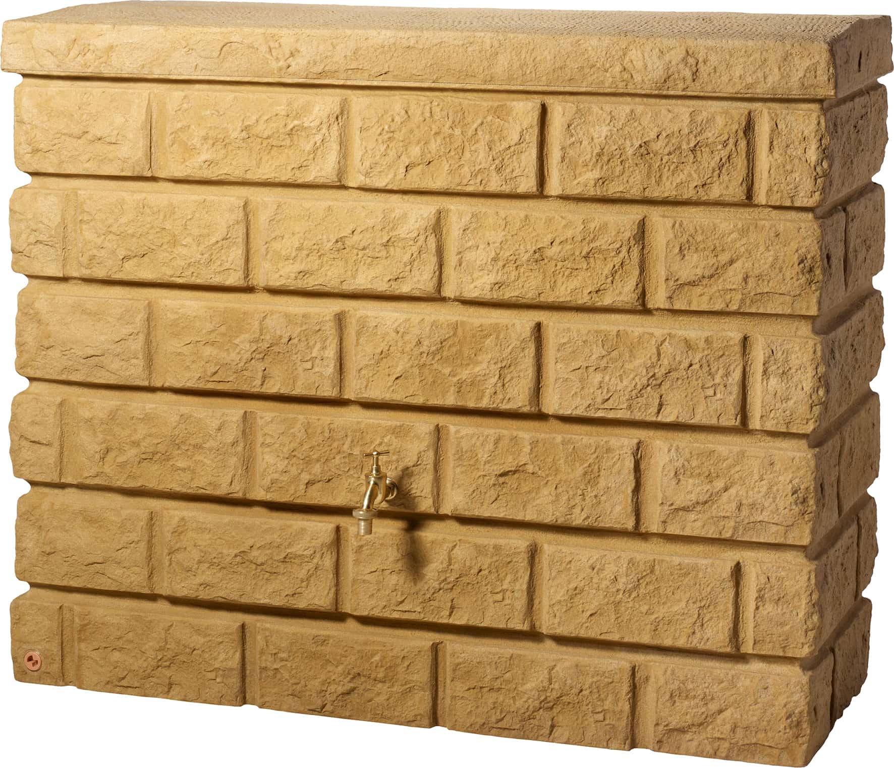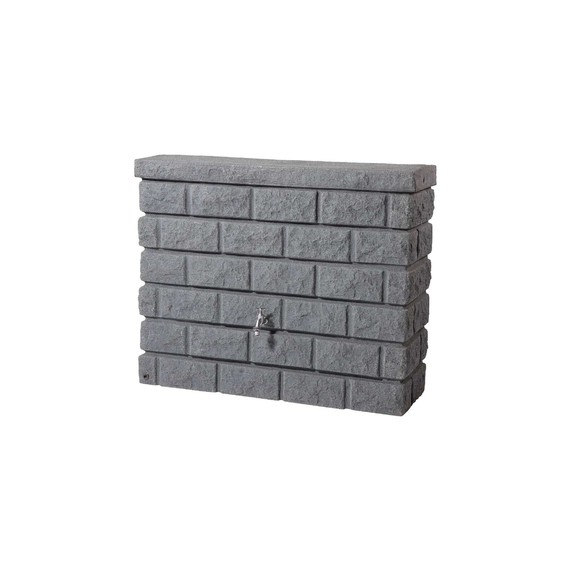 Garantia Rocky Wandtank – Besonders robuster Deko-Regenspeicher in täuschend echtwirkender Steinoptik, zur Aufstellung an der Hauswand. Jeder Behälter ist aufgrund des Fertigungsverfahrens ein Unikat. So setzt der Regenspeicher aus der Garantia Exclusive Line mit seinen hervorragend herausgearbeiteten Details und der dekorativen, matten Oberfläche in 3D-Dekor, lebendige Akzente auf Ihrer Terrasse. Der Behälter verfügt außerdem über zwei hochwertige integrierte Messinggewinde 19 mm (3/4“) für die Montage des Auslaufhahns (Zubehör), sowie zur Restentleerung vor der Frostperiode. Hohes Speichervolumen bei geringem Platzbedarf. Ihr Regenwasserbehälter ist Witterungseinflüssen und starken Temperaturschwankungen ausgesetzt. Auf diese Bedingungen abgestimmte Materialien sorgen für eine lang anhaltend gute Optik. Zusätzlich ist der Behälter für eine lange Lebensdauer im Freien vor Sonneneinstrahlung geschützt. Die Einwirkung des UV-Lichts wird auf ein Minimum reduziert. Bereits bei der Entwicklung eines Garantia Produkts wird sehr viel Wert auf ein nachhaltiges Produktdesign gelegt. Die Herstellung erfolgt auf modernsten Produktionsanlagen. Dies sorgt auf Dauer für weniger Umweltbelastung. Dieser Regenwasserbehälter wird unter Einsatz von Recyclingkunststoff hergestellt und ist zu 100 % recycelbar. Lieferumfang: Regenwasserbehälter, Zulaufdichtung. 5 Jahre Herstellergarantie. Behälter muss bei Frostgefahr im Winter vollständig entleert werden.