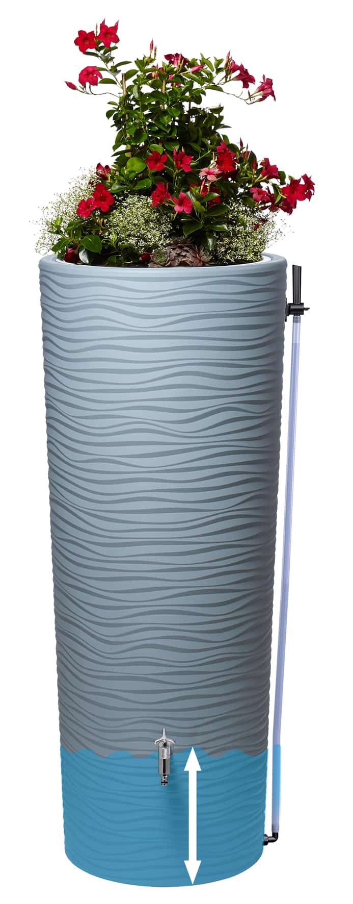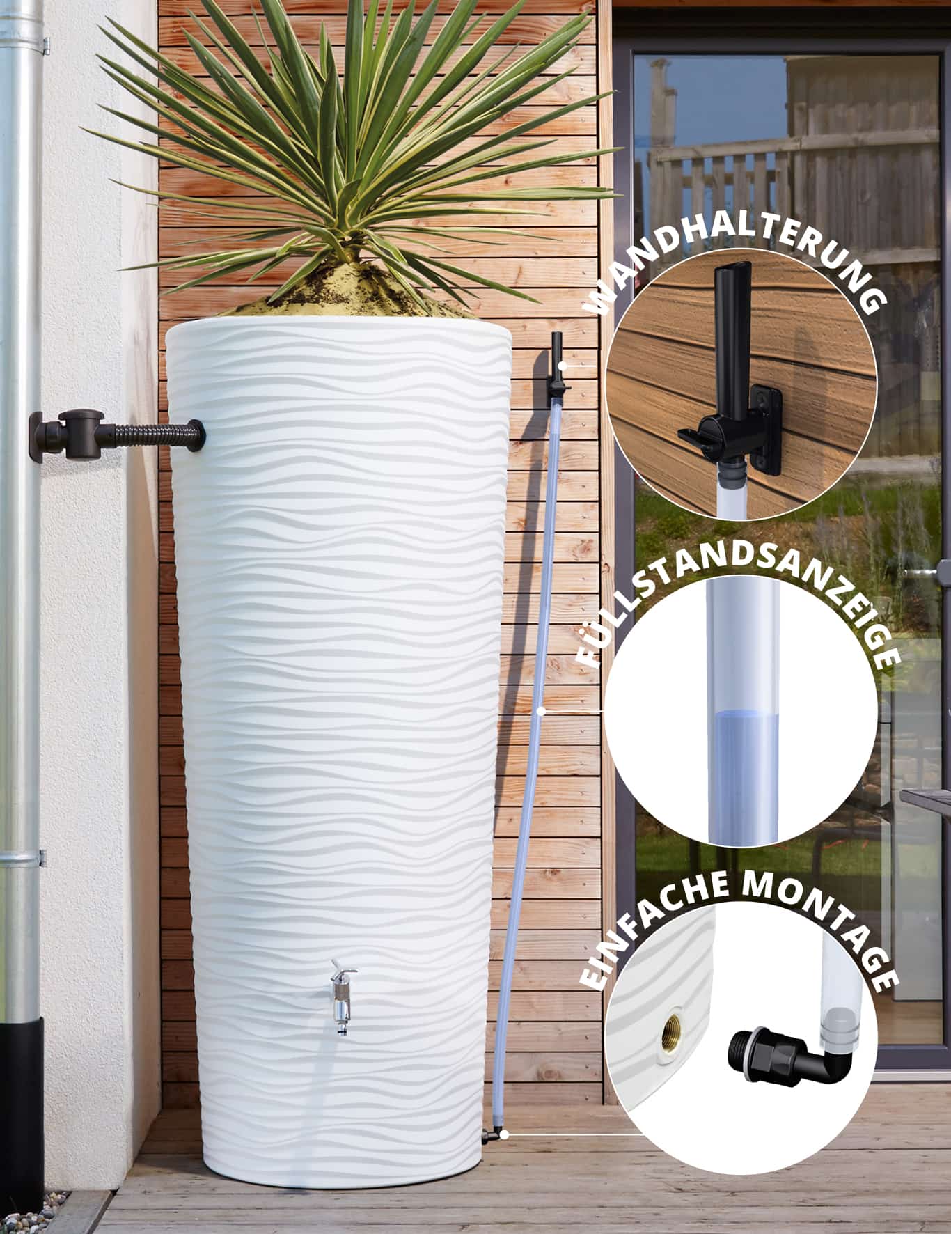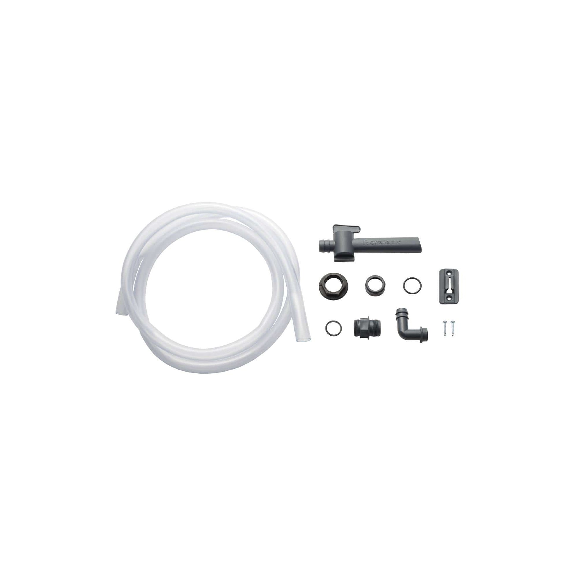 Garantia Schlauchset Aqua-Go – geeignet zur komfortablen Wasserentnahme Ihres Regenspeichers. Das Schlauchset Aqua-Go überzeugt durch seine moderne, schlichte Optik und die bequeme Handhabung. Mit diesem Set können Sie das gesamte Füllvolumen Ihres Regenwasserbehälters nutzen, auch unterhalb des meist verwendeten Auslaufhahns. Der transparente Schlauch zeigt Ihnen bei einer Befestigung über die Wandhalterung zusätzlich immer den aktuellen Füllstand Ihrer Regentonne, bis zu einer Höhe von 2 Metern. Bei niedrigern Behältern kann der mitgelieferte Schlauch entsprechend gekürzt werden. Diese Alternative Entnahmemöglichkeit bietet Ihnen ebenfalls eine bequeme Restentleerung vor der Frostperiode im Winter. Einfache Montage über Anschlussgewinde 19 mm (3/4“), passend für alle oberirdischen Regenwasserbehälter der Marken Garantia und 4rain. Lieferumfang: 2 m PVC-Flexschlauch, Wasserhahn mit Stop- und Go-Funktion, Schlauchtülle, Gewindeanschluss, Dichtungen, Wandhalterung inkl. Schrauben.