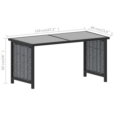 Spezifikationen Farbe: Anthrazit, Schwarz Polsterfarbe: Dunkelgrau Material: Poly Rattan, Aluminium, Stoff (100% Polyester), Hartglas Gesamtabmessungen: 264 x 200 x 64 cm (B x T x H) Abmessungen des Sofa-Eckteils: 68 x 68 x 64 cm (B x T x H) Abmessungen des Sofa-Mittelteils: 64 x 68 x 64 cm (B x T x H) Abmessungen des Esstisches: 120 x 60 x 66 cm (L x B x H) Fußhocker-Abmessungen: 40 x 40 x 40 cm (B x T x H) Sitzhöhe: 32 cm Sitzpolster-Stärke: 8 cm Kissendicke: 12 cm Zusammenbau erforderlich: Ja Lieferung enthält: 3 x Sofa-Eckteil 3 x Sofa-Mittelteil 1 x Esstisch 2 x Hocker 8 x Sitzpolster 6 x großes Rückenkissen (Lendenkissenform) 1 x kleines Rückenkissen (Lendenkissenform)