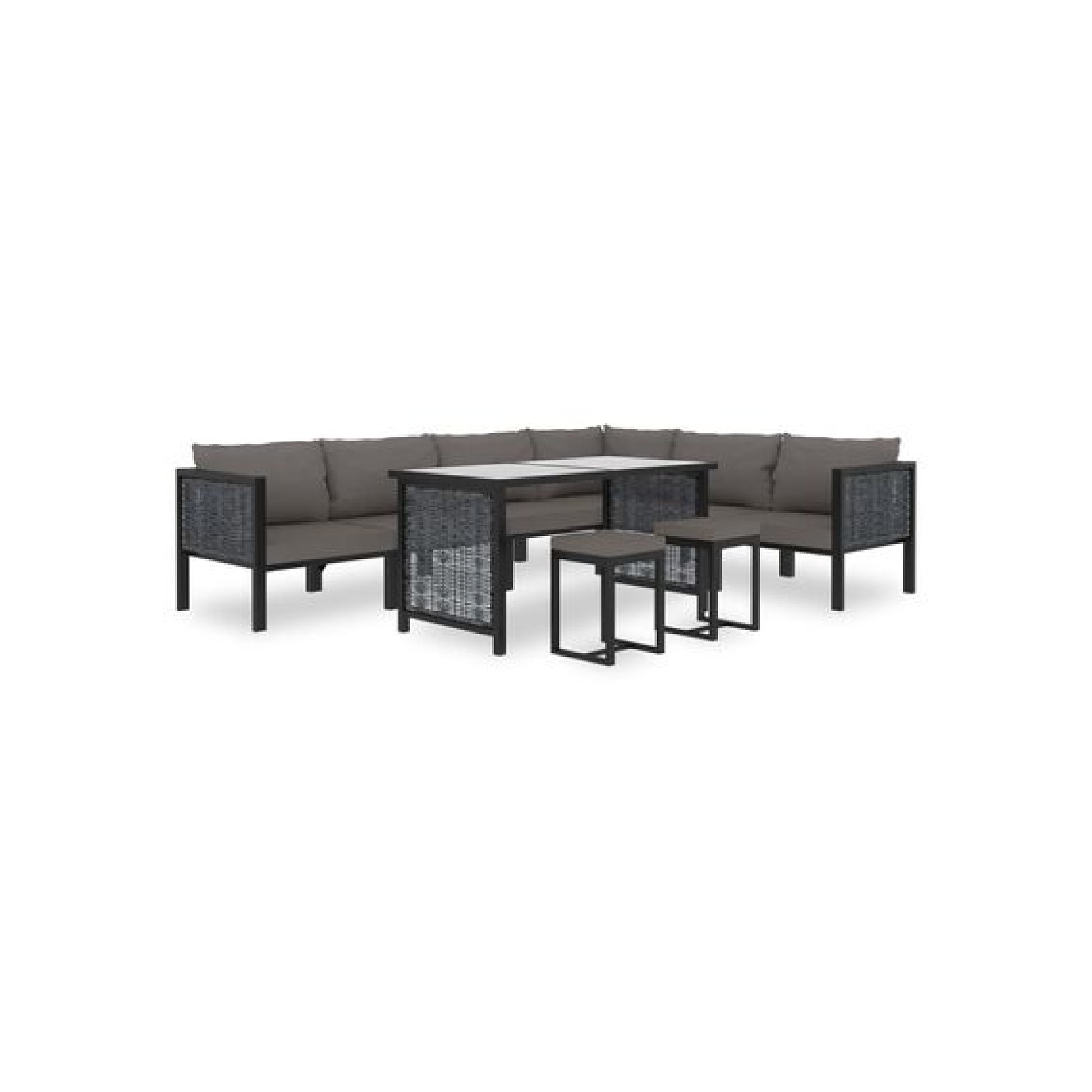 Garten-Lounge-Set 9-tlg. mit Auflagen Poly Rattan Anthrazit