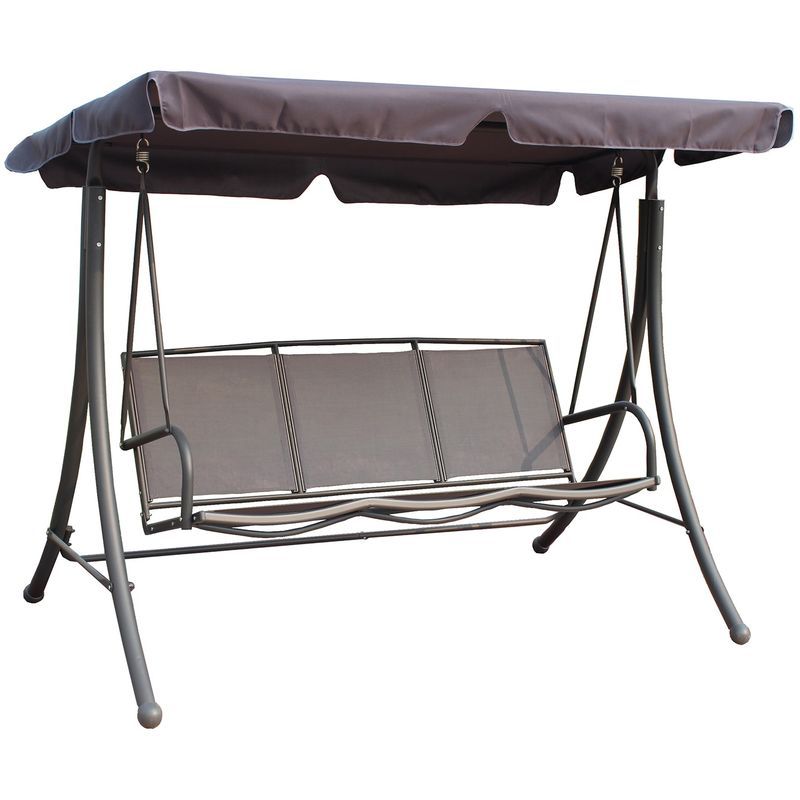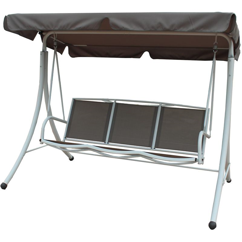 Der pulverbeschichtete Stahlrahmen sorgt für Stabilität und Langlebigkeit, während das Sonnendach und die bequeme Sitzfläche aus strapazierfähigem Polyester angenehmen Schatten und Sitzkomfort bieten. Die Schaukel ist für bis zu drei Personen geeignet und bis 220 kg belastbar – ideal für gemeinsame Momente.