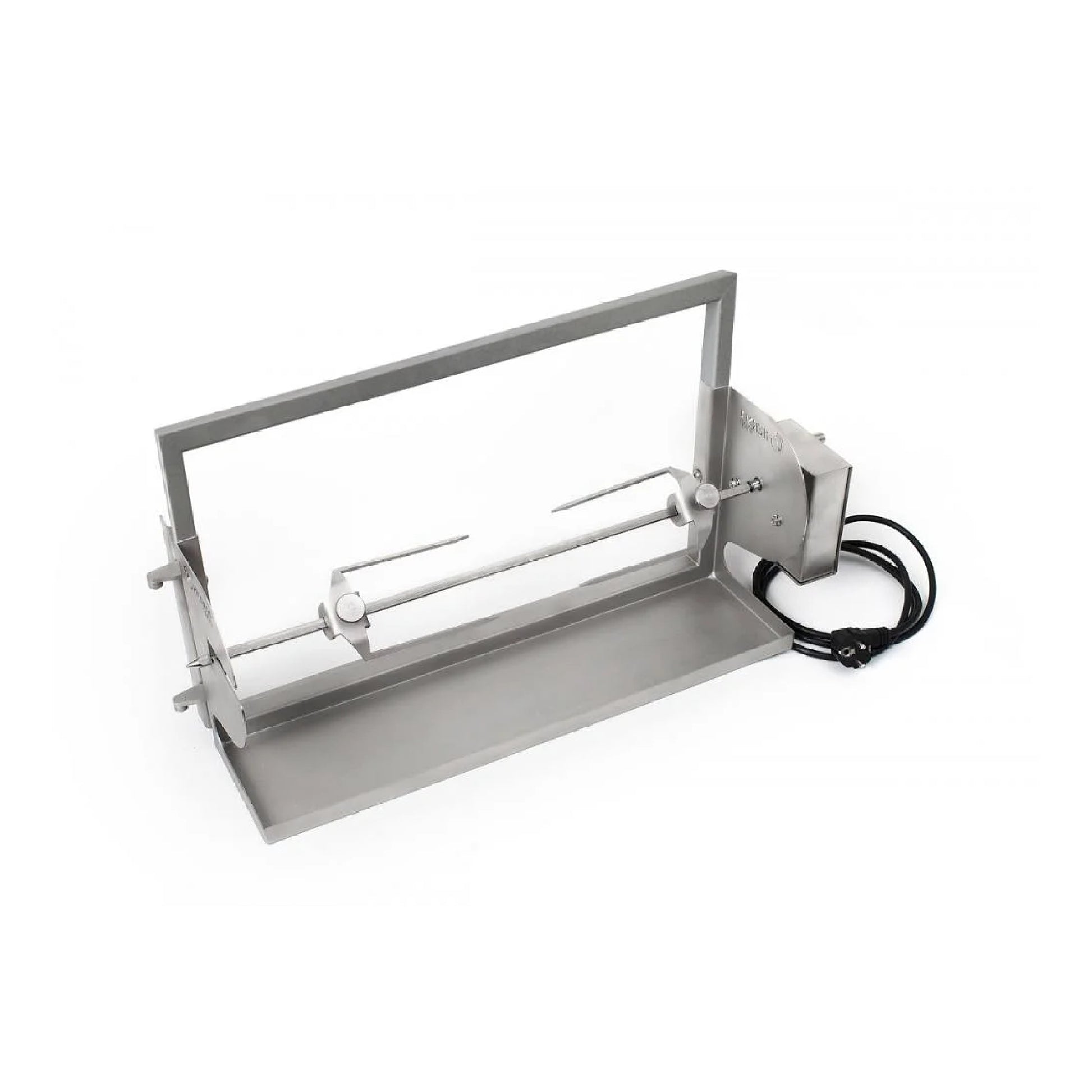 Elektrischer Drehspieß mit integrierter Fettauffangschale inkl. 2m langen Kabel mit Stecker, 220/230V, 2 Drehrichtungen