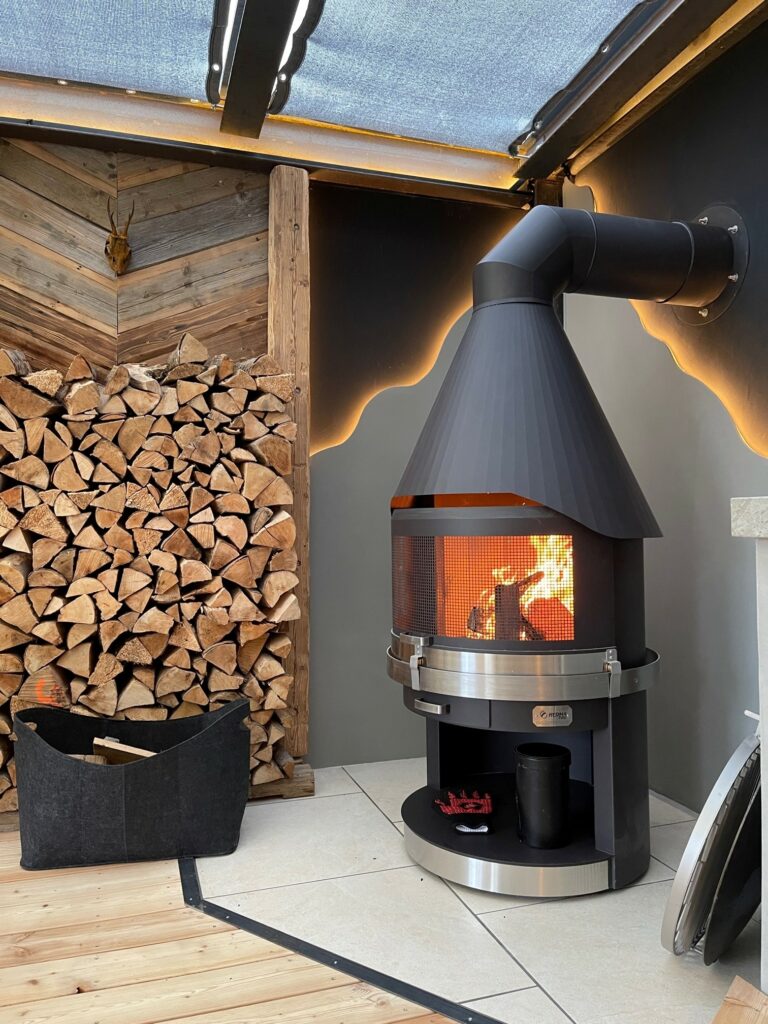 Die integrierte Funkenflugtür Vario 80 schwarz, ermöglicht eine 360° Drehung und ist in der Farbe des Gartenkamins lackiert. Die integrierte Funkenflugtür ist komplett aus Edelstahl gefertigt, sowie auch der Türgriff. Sie schützt vor Funkenflug bei windigem Wetter und sorgt jederzeit für Sicherheit, damit die Kleidung nicht durch Feuerfunken beschädigt wird. Durch das integrierten Lochraster ermöglicht die Funkenflugtür trotzdem einen Blick auf die Feuerstelle, oder das Grillgut. Falls Sie also lästige Funken stören, ist dies die perfekte Lösung.