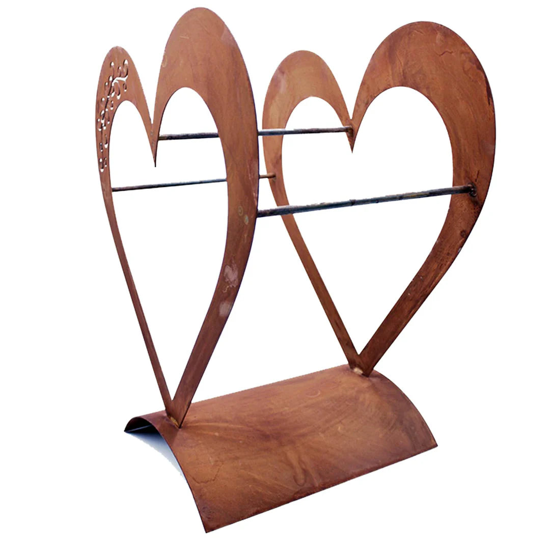 Herz-Holzregal aus Rost Metall, Edelrost Kaminholzregal - Deko für Garten und Haus