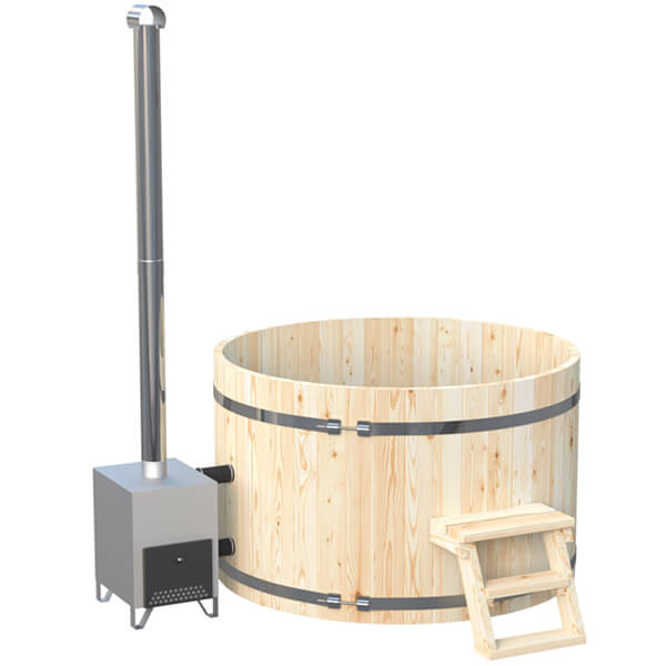 Ein Holzbadezuber mit Außenofen ist traditionelle und gleichzeitig umweltfreundlich. Der effiziente Außenofen erwärmt das Wasser im Holzbadezuber schnell und gleichmäßig. Der Außenofen ist sehr praktisch zu pflegen sowie von Asche zu reinigen und nimmt auch keinen Platz im Badefass ein, sodass Sie den kompletten Platz im Bottich nutzen können! Der kleinste Badezuber mit Außenofen hat einen Durchmesser von 1,6 Metern und bietet Platz für bis zu 6 Personen. Der größte Badezuber im Sortiment hat einen Durchmesser von zwei Metern und bietet genügend Platz für ein kleines Sportteam: insgesamt bis zu 12 Personen!