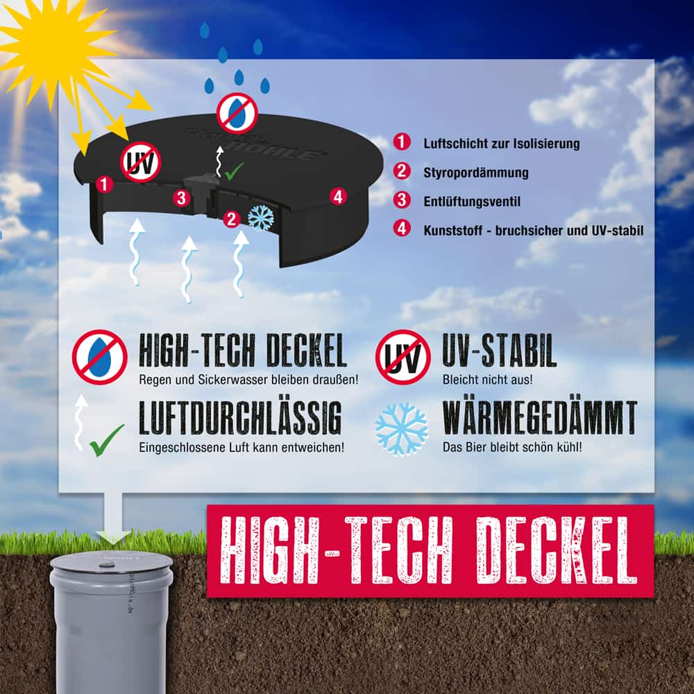 Wasserdichter und UV-stabiler High-Tech Deckel mit Dämmung und Entlüftungsventil für HopfenHöhle und HopfenHöhle LIFT.