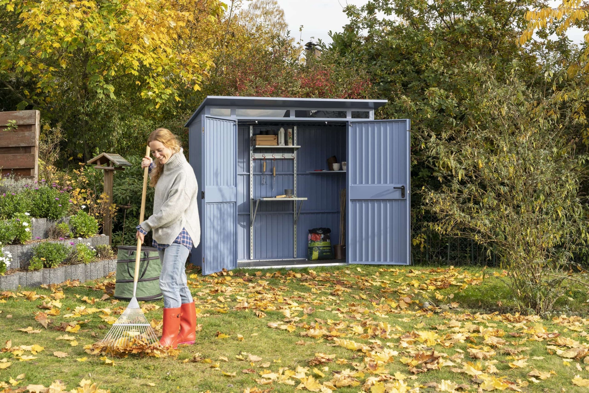 Hörmann Berry-Gerätehäuser – Pultdach - RAL 5014 Taubenblau