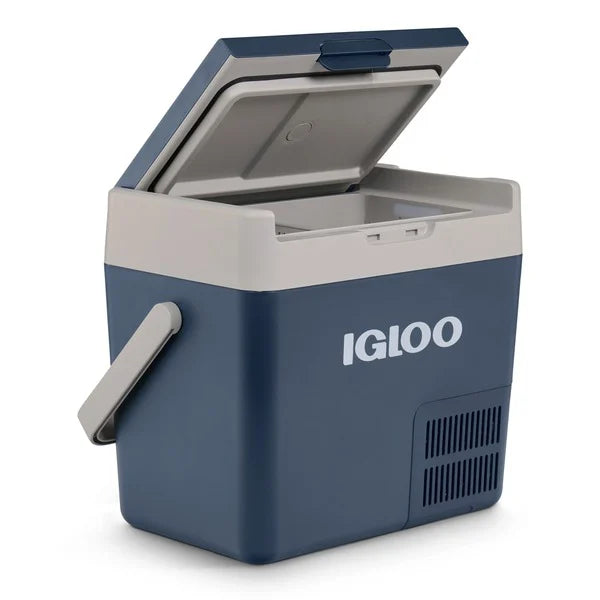 Die ICF18 von Igloo ist eine handliche Kompressor-Kühlbox mit einem großen Temperaturbereich von +20 °C bis -18 °C. So können tiefgefrorene Lebensmittel ohne Einschränkung transportiert und z.B. warme Getränke innerhalb kürzester Zeit herunter gekühlt werden. Einstellen lässt sich die Wunschtemperatur über das intuitiv zu bedienende Display. Hier lässt sich auch der 3-stufigen Batteriewächter aktivieren, der eine Unterspannung der Fahrzeugbatterie verhindert. Das Fassungsvermögen von 19 Litern bietet Platz für 24 Dosen (330 ml) oder 4 Flaschen (1,5 l). Dank der kompakten Standfläche passt die ICF18 perfekt in den Fuß- oder Kofferraum. Die ICF18 kann mit den mitgelieferten Kabeln flexibel über 12 Volt im PKW, 24 Volt im LKW und über 230 Volt zu Hause oder auf dem Campingplatz betrieben werden.Art.-Nr.: 100039180