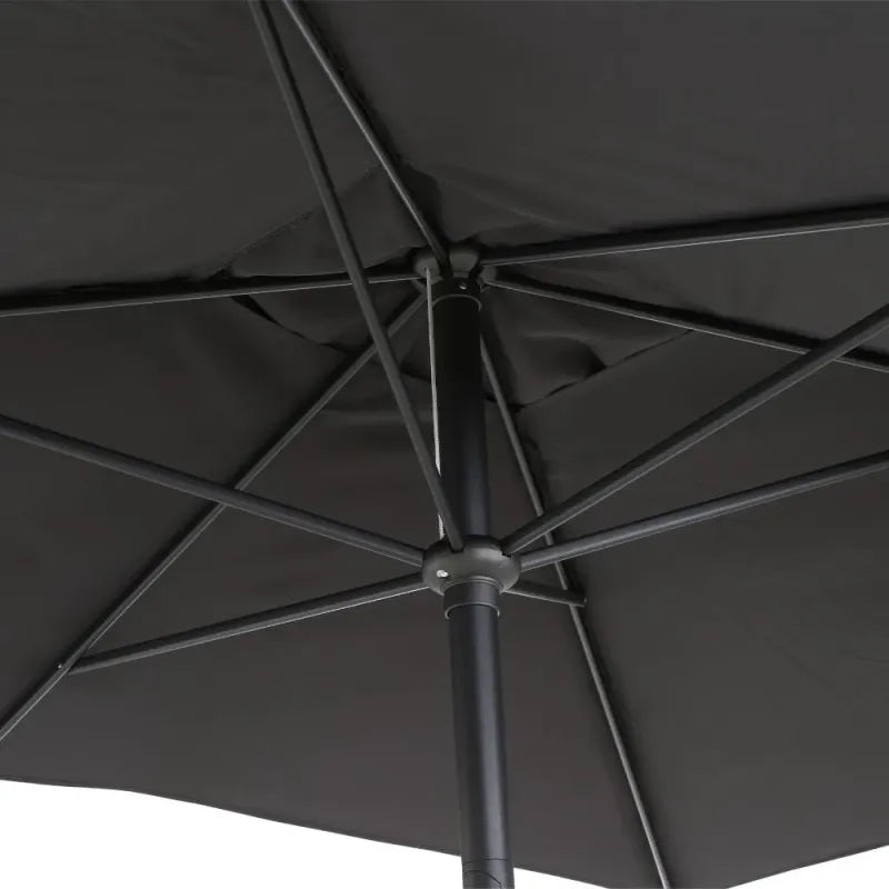 Robustes Gestell | Das Schirmgestell aus pulverbeschichtetem Aluminium bleibt rostfrei und wird durch Streben aus Stahl ergänzt, die dem Schirm zusätzliche Stabilität verleihen. Mit einem Gesamtgewicht von 6kg ist der Schirm dennoch leicht zu deplatzieren.