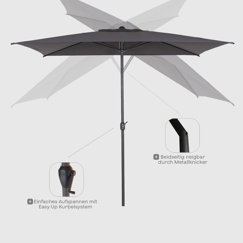 Im Handumdrehen geöffnet | Der Kurbel-Mechanismus ist leichtgängig und ermöglicht es dir, den Schirm ohne viel Kraft zu öffnen und wieder zu schließen.