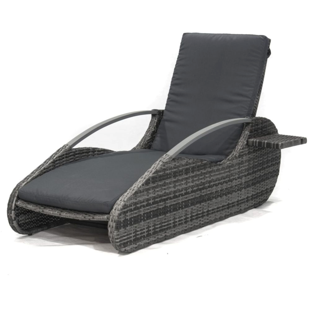 Mit seinen großzügigen Maßen von 194,5 × 62,5 × 66,5 cm bietet der Lounger besten Komfort. Die stufenlos verstellbare Rückenlehne, gepolsterte Kissen in elegantem Anthrazit (100 % Polyester) und angenehm geformte Armlehnen sorgen für maximalen Liegekomfort. Die praktische Ablagefläche an den Armlehnen bietet Platz für Getränke, Bücher oder Sonnenbrille – alles, was Sie zum Relaxen brauchen.