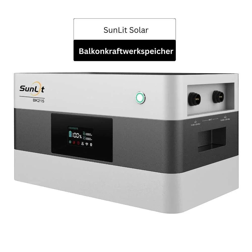Der SunLit BK215 ist ein leistungsstarker LFP-Speicher mit 2,15 kWh Speicherkapazität, der speziell für Balkonkraftwerke entwickelt wurde. Er bietet zwei PV-Eingänge für bis zu vier Solarmodule und eine maximale Ausgangsleistung von 1920 W. Dank der IP65-Zertifizierung und des integrierten Batteriemanagementsystems eignet er sich für den Indoor- und Outdoor-Einsatz.