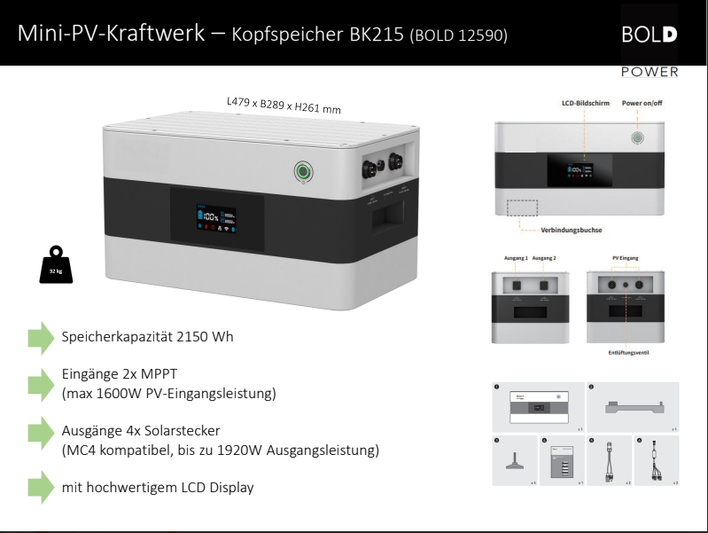 Mini-PV-Kraftwerk – Kopfspeicher BK215