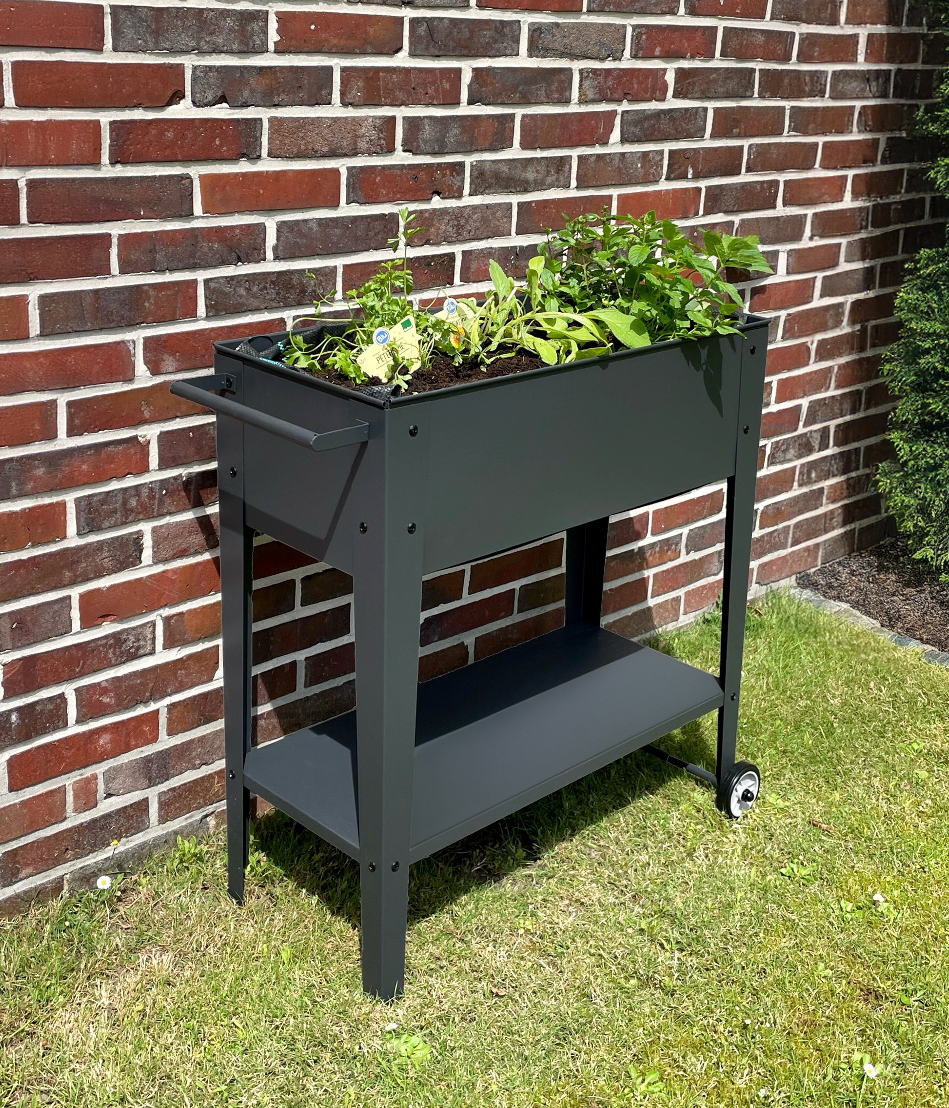 Das mobile Hochbeet aus Stahl kombiniert langlebige Konstruktion mit höchster Funktionalität für Terrasse, Garten oder Balkon. Gefertigt aus stahlpulverbeschichtetem, feuerverzinktem Metall in Anthrazit, gewährleistet es Korrosionsschutz und Witterungsbeständigkeit für eine langanhaltende Nutzung.