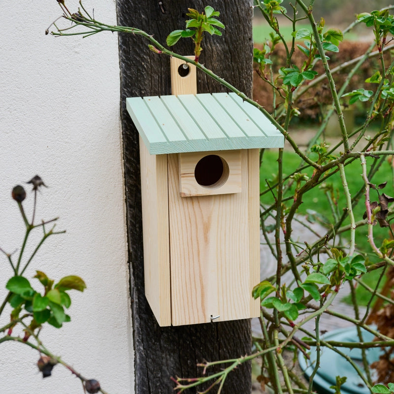 Langzeitfreude | Das Kiefernholz ist besonders langlebig und robust. Die schöne Holzoptik macht das Vogelhäuschen zu einem Blickfänger.